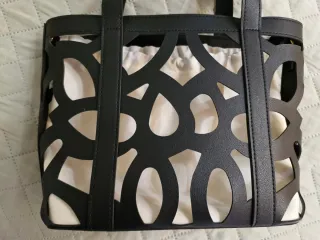 Bolso de mano negro con diseño calado