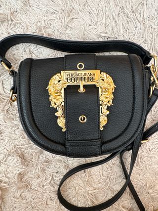 Bolso de la marca Versace Jeans Couture en color negro con detalles dorados. Se encuentra en buen estado. - Diseño con hebilla frontal. - Correa ajustable.