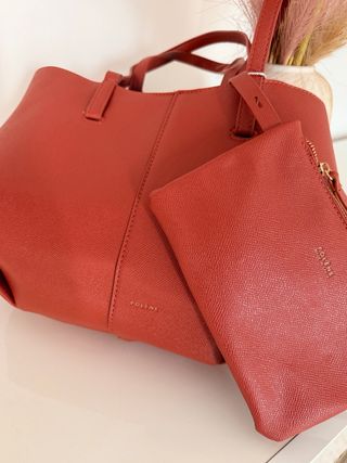 Bolso de la marca Polene en un llamativo tono naranja rojizo. - Diseño elegante y moderno. - Incluye un neceser a juego.