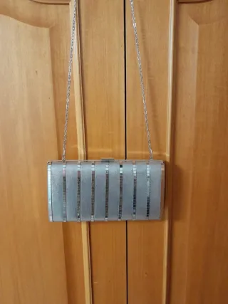 Bolso de fiesta plateado con cadena