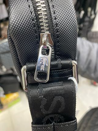 Bolso bandolera de la marca Lacoste en color negro. Diseño moderno y práctico. - Logo en relieve. - Pequeño cocodrilo metálico en la parte inferior. - Etiqueta de la marca incluida.