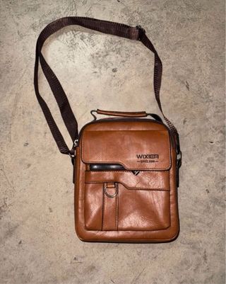 Vendo bolso bandolera para hombre de la marca WIXIER. Es de color marrón y tiene un diseño elegante y discreto. - Está hecho de cuero sintético de apariencia robusta. - Dispone de un compartimento principal con cierre de cremallera y un bolsillo frontal con cierre de botón. - Incluye una correa de hombro ajustable y desmontable. MEDIDAS 24 cm alto 20 cm ancho 9 cm fondo