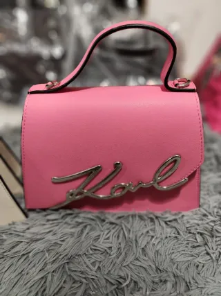 Bolso de mano Karl Lagerfeld en color rosa vibrante con detalles plateados. - Diseño elegante con el logo de la marca. - Asa superior para llevar en la mano. - Cierre de solapa.