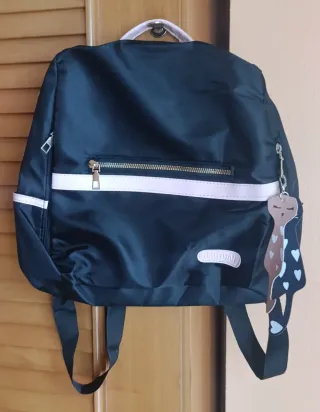 Bolso mochila de estilo moderno. - bolsillo antirrobo con cremallera en la parte trasera - Compartimento principal con cierre de cremallera. - Bolsillo frontal con solapa. - Etiqueta con nombre de marca en el bolsillo frontal. - Correa ajustable - bolsillos con goma en los laterales - argolla para colgar algún llavero.