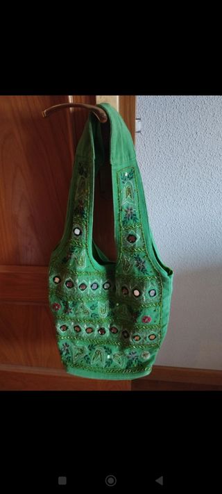 Preciso bolso de hombro con muchos detalles en la parte de delante. lleva mucho tiempo guardado. se cierra con cremallera