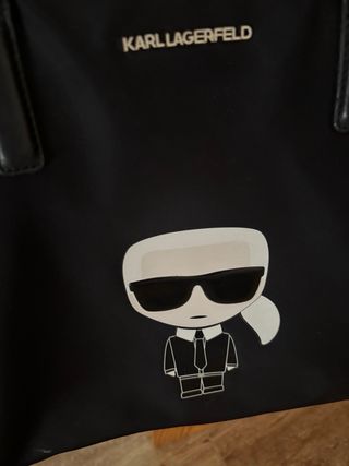 Bolso tipo shopper de la marca Karl Lagerfeld. - Diseño con el icónico Karl Lagerfeld en blanco. - Cierre de cremallera. - Asas de piel. cuesta 130 y lo vendo por 40