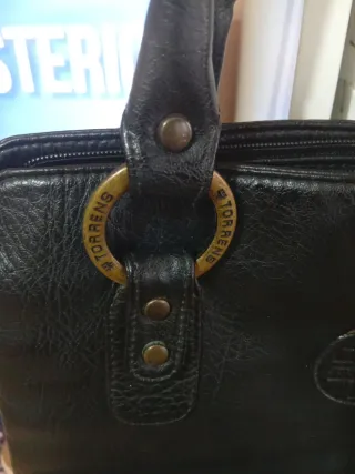 Elegante bolso de mano de la marca Torrens. - Elaborado en cuero negro. - Diseño clásico y funcional.