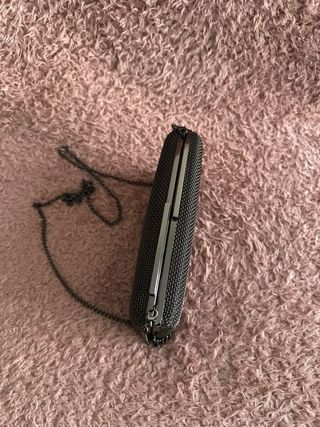 Bolso negro con textura. - Cierre de cremallera. - Correa ajustable.