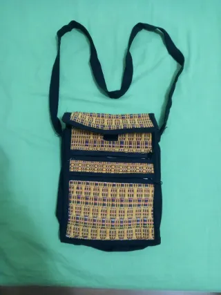 Bolso bandolera con un diseño tejido y llamativo. Es un accesorio práctico y con estilo. - Tejido con detalles en varios colores. - Correa para llevar al hombro o cruzado. - Dos compartimentos con cremallera y la principal con cremallera más velcro. - Sin marca.
