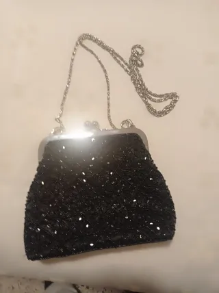 Elegante bolso de mano para eventos especiales.por delante es con lentejuelas y por detrás raso, las medidas son 15,5x19 - Diseño adornado con pedrería. - Cierre de broche metálico. - Incluye cadena plateada para llevar al hombro.