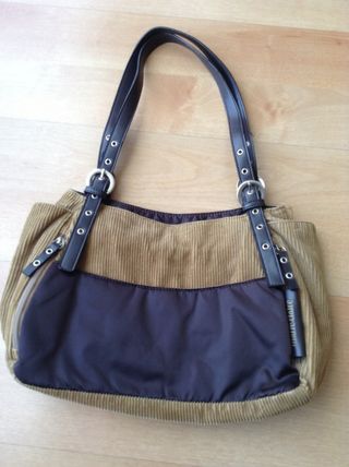 Bolso de la marca Marie Claire con un diseño moderno y práctico. - Material exterior de pana. - Panel frontal de tela. - Asas de cuero sintético con hebillas. - Cremalleras laterales decorativas.