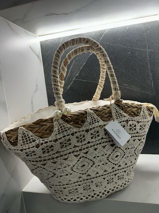 Bolso de mano con un diseño tejido a crochet. - Material: Crochet - Color: Beige - Marca: Zara
