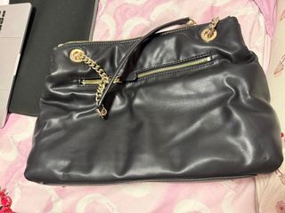 Bolso grande de la marca Guess en color negro. Se encuentra en muy buen estado. - Cierre principal con cremallera. - Asa de cadena dorada. - Bolsillo exterior con cremallera.