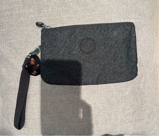 Bolso de mano o monedero de la marca Kipling. - Diseño en color negro jaspeado - Incluye llavero con mono de la marca - Cierre de cremallera.