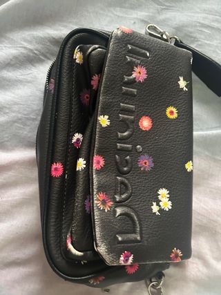 Bolso de la marca Desigual con un diseño floral. - Color negro con estampado de flores. - Cierre de cremallera. - Correa ajustable.