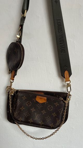 Bolso de la marca Louis Vuitton con un diseño elegante. - Combinación de colores marrón y negro. - Correa ajustable para mayor comodidad.