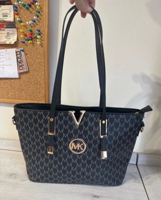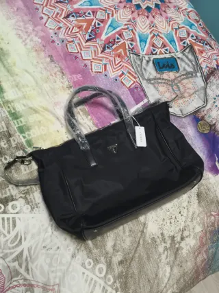 Bolso de mano con un diseño moderno y elegante. - Estampado con el logo de la marca. - Asa de mano cómoda. - Cierre de cremallera. Si precio en el mercado es de 60€