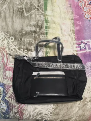 Vendo bolso original de la marca GUESS, modelo G Wave Travel en color negro. Está NUEVO A ESTRENAR, conserva todos sus plásticos protectores en las asas, herrajes y etiquetas originales. Es un modelo de gama alta, ideal tanto para el día a día como para viajes de fin de semana (tamaño Carry-on, perfecto para cabina de avión). Estado: 10/10 (A estrenar, impecable). Detalles: Nylon de alta calidad, muy resistente y fácil de limpiar. Detalles en efecto piel. Extras: Incluye la correa bandolera ancha ajustable con el logotipo de GUESS grabado. Compartimentos: Gran capacidad interior + bolsillo frontal con cremallera de fácil acceso.
