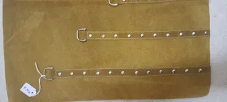 Bolso de piel en tono marrón, con un diseño único y detalles metálicos. - Material exterior de piel. - Cierre con hebillas plateadas. - Adornos de tachuelas plateadas.