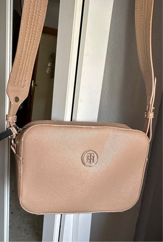 Bolso de la marca Tommy Hilfiger en color beige. Tiene desgaste en los bordes, hace falta darle con el tinte para repararlo