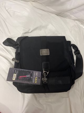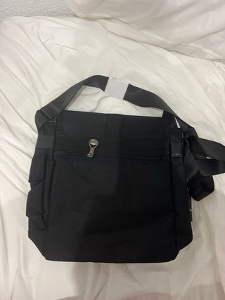 Bandolera unisex de la marca S.D.N. en color negro. - Diseño moderno y funcional. - Correa ajustable para mayor comodidad. - Compartimentos interiores para organización. -Medidas: 29cm largo, 27cm ancho , 10cm de fondo , la correa es extensible (medidas aproximadas) -presenta algunas ligeras descamaciones milimétricas