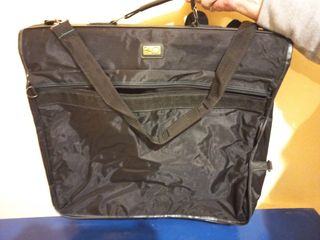 porta trajes con percha de colgar, con perchas, y muchos bolsillos para llevar otros artículos de viaje. esta nuevo, nunca usados