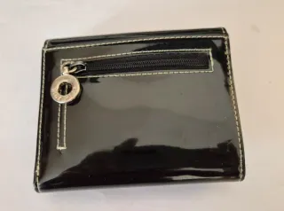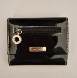 Cartera de charol sintético marca Nine West, comprada en EEUU. Muchos compartimentos para tarjetas y dos niveles de botón, según lo llena que esté la cartera. Compartimento para monedas con cremallera.