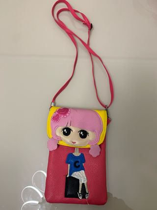 Bolso bandolera para niñas con un divertido diseño de muñeca. - Cierre de solapa. - Correa ajustable. - Adorno de muñeca con pelo rosa y detalles. - Cuerpo del bolso en color fucsia.