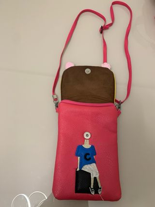 Bolso de la marca Bimba y Lola en color rosa, diseñado para llevar el móvil. - Correa ajustable. - Cierre de cremallera. Tamaño: - alto 27,5 cm - ancho 10 cm