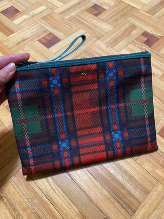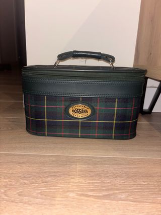Neceser con un diseño clásico de tartán. - Asa superior para facilitar su transporte. - Cierre de cremallera, hay que quitar el candado - Detalle de logo de la marca. - Pequeño desperfecto en el interior (se ve en ma última foto). - Medidas : 15 cm de alto x 27 de ancho.