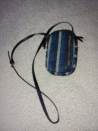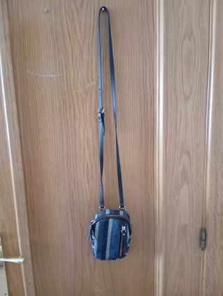Bolso pequeño y práctico, ideal para llevar el móvil. - Diseño vertical con rayas. - Cierre de cremallera. - Correa ajustable para llevar al hombro o cruzado.