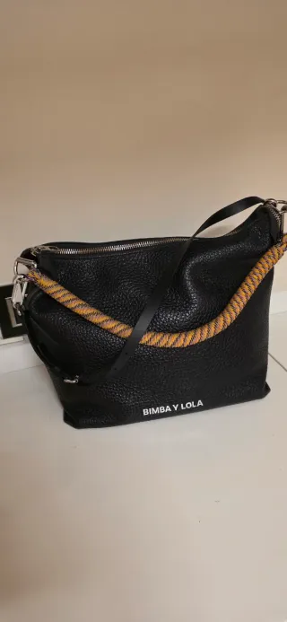 Bolso de la marca Bimba y Lola de piel - Diseño en color negro con detalles multicolor. - Asa con cuerda trenzada. - Cierre de cremallera.