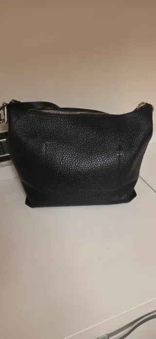 Bolso de piel con un diseño elegante y moderno. Su asa de cuero le da un toque sofisticado. - Material: Piel. - Color: Negro. - Cierre superior.