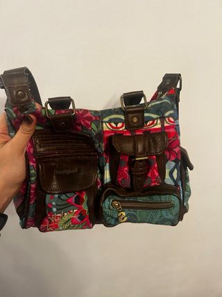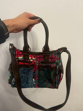 Bolso de mano y bandolera de la marca Desigual con un diseño vibrante y original. - Combinación de estampados florales y texturas. - Asas de mano y correa ajustable. - Múltiples bolsillos exteriores.