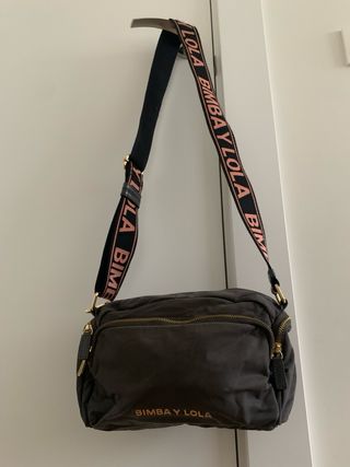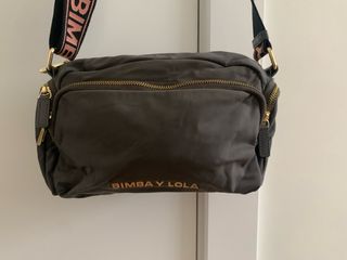 Bolso de la marca Bimba y Lola en color gris con detalles metálicos dorados. Su diseño es moderno y funcional. Tiene dos compartimentos con cremallera, bolsillo delantero y cinta ancha regulable con logo de la marca. Ideal para uso diario, viajes o looks casual. - Correa ajustable. - Cremalleras frontales. - Logo de la marca en relieve. Características: • Nylon acolchado • Logo bordado en dorado • Herrajes dorados • Correa ajustable con logo "Bimba y Lola" • Varias cremalleras y bolsillos • Muy cómodo y resistente