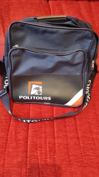 Bolso de viaje vintage de la marca Politours. Un accesorio con un diseño clásico y práctico. - Compartimento principal con cierre de cremallera. - Bolsillo frontal adicional. - Correa de hombro ajustable. - Asa superior para llevar en mano.