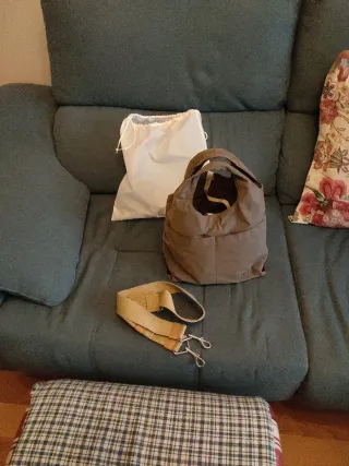 Lote de dos bolsos, uno marrón y otro gris, ambos con signos de uso. Se incluye un tercer bolso de regalo. - Bolso marrón con detalles de hebillas. - Bolso gris con cierre de cremallera y detalle de correa. 4€ los dos. Entrega en mano.