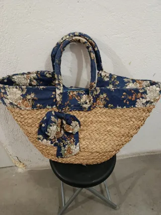 Bolso de paja forrado tela floral