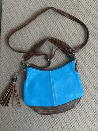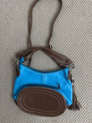 Bolso bandolera azul y marrón con flecos