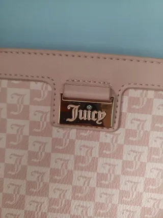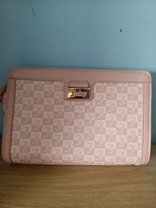 Elegante bolso de la marca Juicy Couture. - Diseño a cuadros con el logo de la marca. - Detalle metálico dorado en la parte frontal. - Acabado en tono rosa.