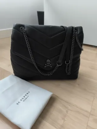 Bolso marca scalpers de piel color negro. Medidas en las fotos. Modelo Rusian Bag. Se puede usar al hombro o cruzado. Prácticamente nuevo, está impecable. Incluye funda guardapolvo original.