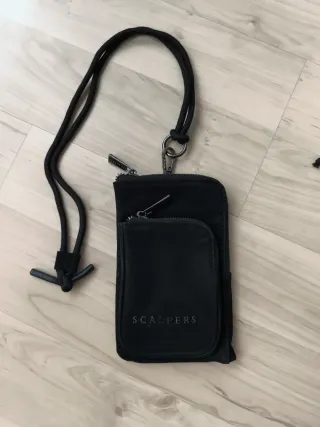 Bolso marca scalpers negro. Doble bolsillo y cierre de cremallera. Las medidas estás en las fotos. Muy poco uso, está perfecto.