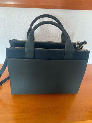 Bolso rígido con gran capacidad y tres compartimentos con cremallera. - Diseño estructurado. - Asa de mano. - Correa de hombro ajustable.