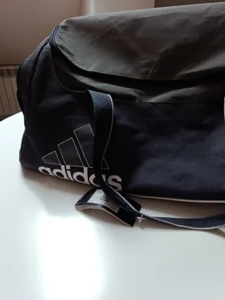 Bolsa de deporte de la marca Adidas. - Diseño espacioso y práctico. - Asas resistentes para llevarla cómodamente. - Cierre de cremallera. 2 bolsos laterales con cremallera Medidas 70 x30 x30 de alto La tengo sin usar con etiqueta un poco rallada la base por estar almacenada