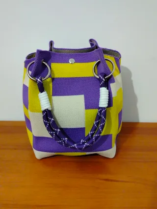 Bolso cubo nylon morado y amarillo