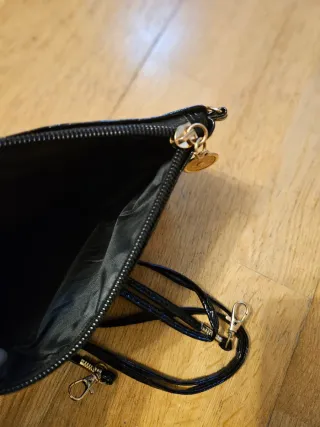 Bolso negro con cremallera dorada,varias cremaller