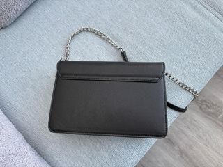Bolso de mano o de hombro de la marca Bershka. - Diseño elegante y minimalista. - Asa de cadena metálica. - Cierre de solapa.