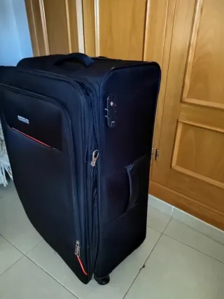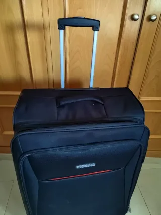 Maleta grande de la marca American Tourister en color negro. Cuenta con un asa superior y lateral para facilitar su transporte, además de ruedas para moverla cómodamente. - Candado de combinación integrado. - Bolsillo frontal con cremallera. - Cremalleras de apertura principal. Expandible 108/118L Cuatro ruedas Sin uso