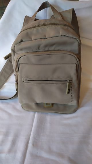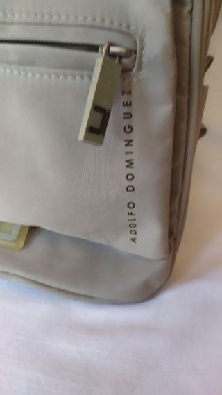 Mochila de la marca Adolfo Dominguez en color beige. Diseño moderno y práctico. - Compartimento principal con cierre de cremallera. - Bolsillo frontal con cremallera. - Correa ajustable.