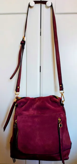 Bolso de hombro con correa. - Diseño moderno. - Acabado en ante.